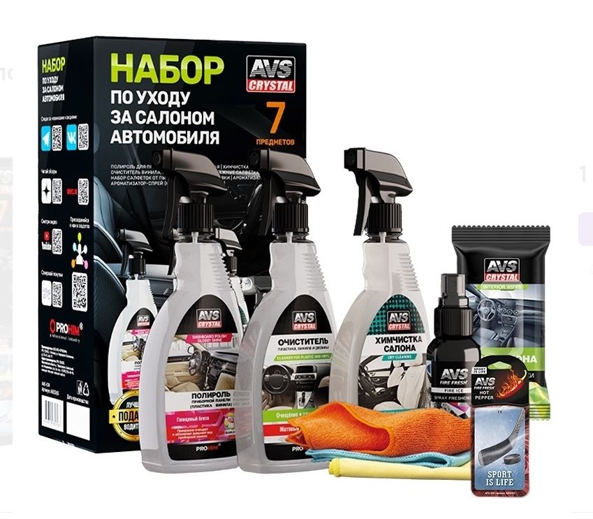 Главная / Автохимия и автокосметика / Очистители интерьера / Набор по уходу за салоном автомобиля AVS AVK-874 /1/4/