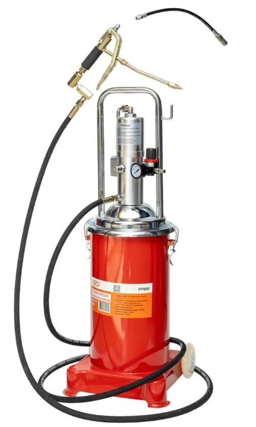 Главная / Инструмент / Смазочное оборудование / Нагнетатель смазки с пневматическим насосом 50:1 и емкостью 16л SIPL
