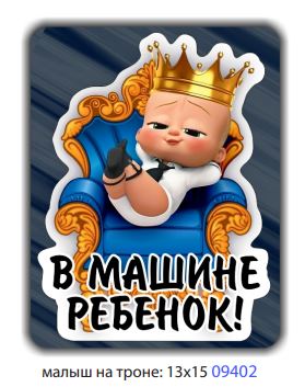 Главная / Автонаклейки / Наклейки перевозка детей / Наклейка "В машине ребенок" (13х15 см) ,мальчик на троне (09402) шт /10/