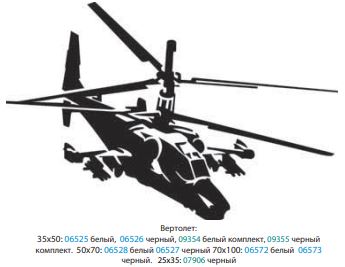 Главная / Автонаклейки / Наклейки разное / Наклейка (вырезанная) "Вертолет "Черная Акула"(25х35 см) черный шт