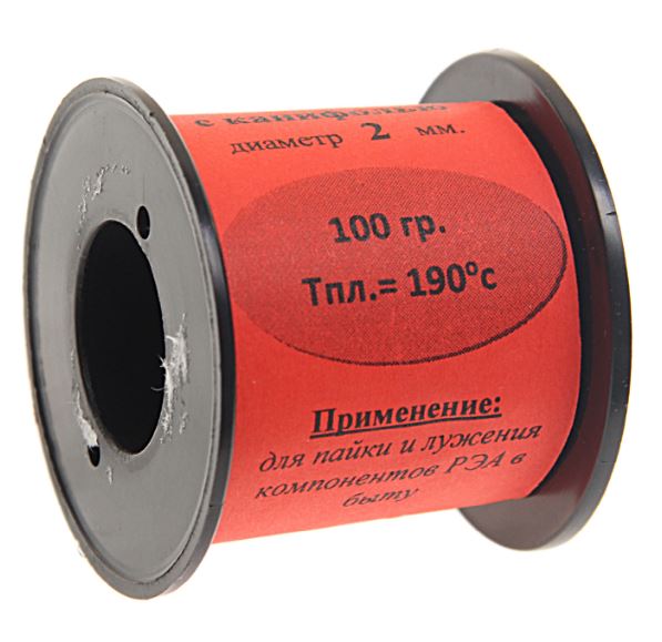 Главная / Паяльники и расходные материалы / Припой ПОС-40 d=2.0мм 100г катушка с канифолью ВТО
