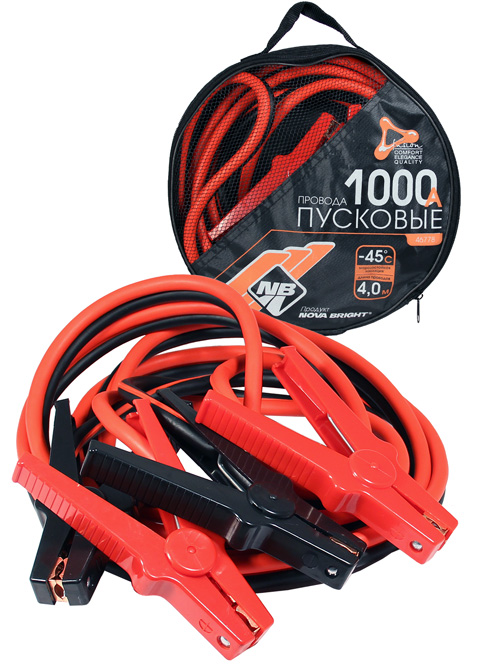 Главная / Зарядка и обслуживание АКБ / Провода прикуривания / Провода пусковые 1000А 4м в сумке Nova Bright морозостойкие (4шт.уп)
