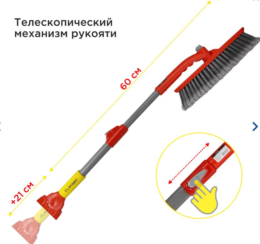 Главная / Уход за авто / Щетки от снега / Щетка для снега телескопическая с поворотной головкой и двойным скребком CLIM ART 60-81 см (CA-WB-09