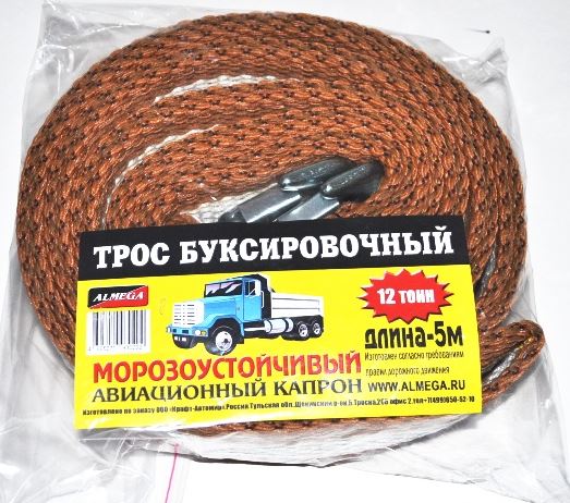 Главная / Автоаксессуары / Троса, карабины, крюки / Трос буксировочный 12т. 2крюка 5 м. морозоуст.капрон